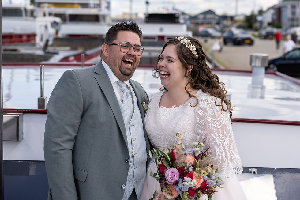 Op 21 augustus vierden ze hun liefde groots met een feest. Dit keer in een prachtige bruidsjurk en een stijlvol pak, samen met twee schattige bruidskindjes. Voor de reportage bezochten we de Suikerfabriek in Zevenbergen, wat een fantastische locatie! Ook maakten we nog foto’s op het schip van het bruidspaar. Al die schepen, versierd met vlaggen… een geweldig gezicht.